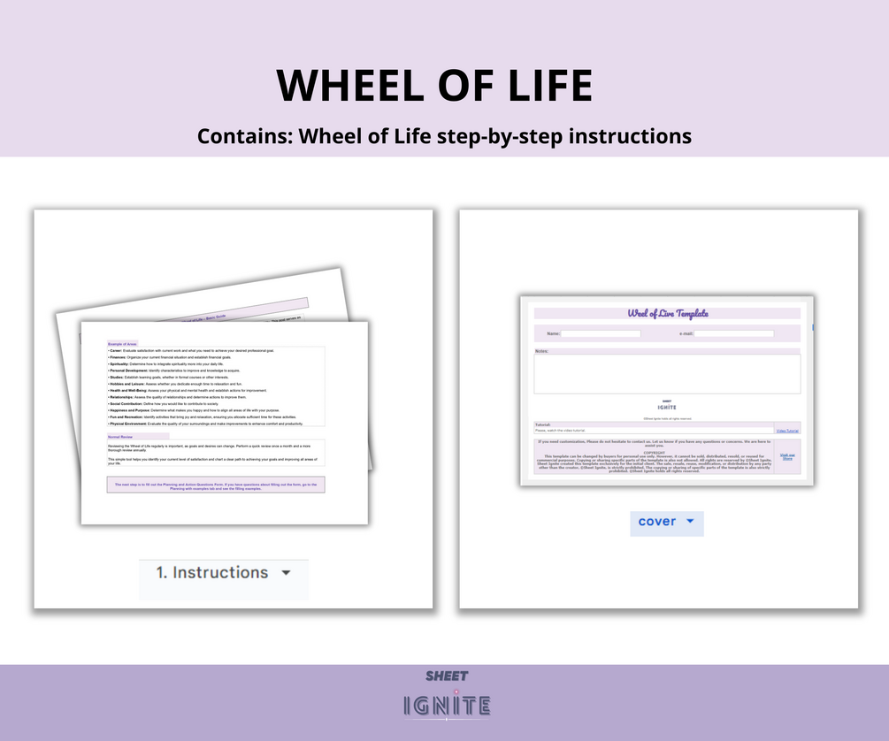 General Instructions: This tab provides detailed guidelines on how to use the Wheel of Life template. With clear and simple steps, you can quickly start your journey of self-discovery and life balancing.