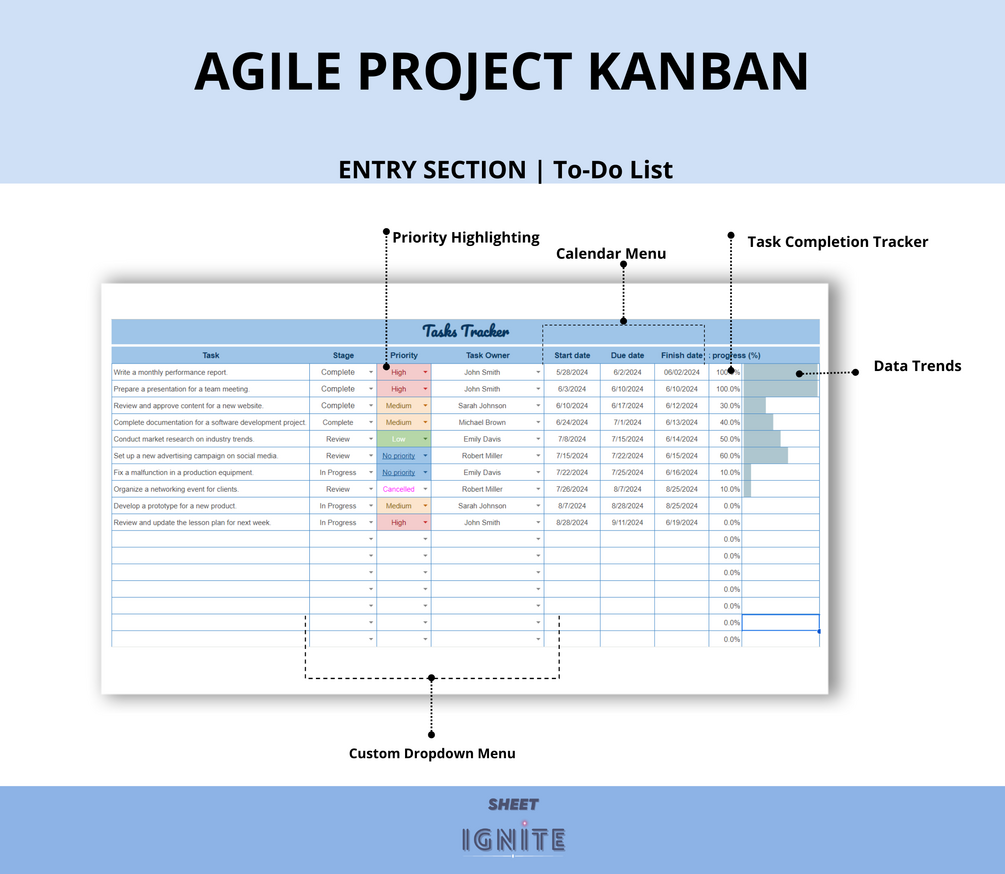 • Task Owner: Indicates who is responsible for completing a particular task. Each task can have an assigned owner, facilitating the assignment of responsibilities within the team.